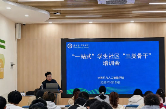 为进一步夯实学院心理健康教育工作基础,全面提升心理骨干队伍的专业素养与履职能力,2025年11月,湖北第二师范学院计算机与人工智能学院在一站式学生社区团体辅导室成功举办心光灿烂委以重任心理委员暨三类骨干专题培训会。2025级全体心理委员、寝室长及院心理协会骨干成员参加本次培训。 本次培训由学院心理健康指导教...