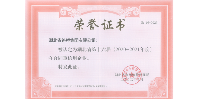 中华建设网讯(通讯员 黄马杰)近日,湖北省市场监督管理局公布了湖北省(2020—2021年度)守合同重信用企业名单,湖北路桥凭借健全的信用管理体系、良好的合同履约能力及社会信誉,再次荣膺“守合同重信用企业”,这也是湖北路桥连续22年蝉联此荣誉。 (图:湖北路桥荣获“守合同重信用企业”证书) 湖北省“守合...