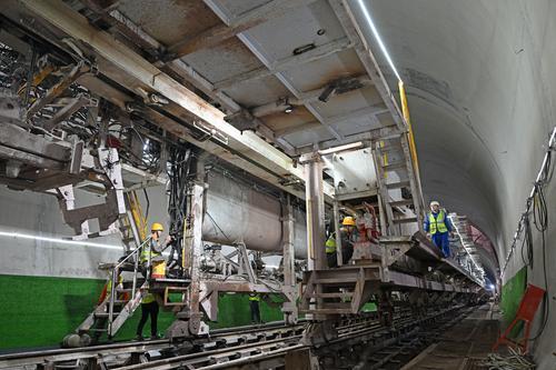 2月11日早上不到七点半,天刚亮,地下83米长江上游轨道交通第一隧道内已是一派忙碌:右线隧道内,50多名建设者正在对右线盾构机进行组装;左线隧道内,6名建设者正在对组装完后的盾构机,安装负环管片(没进入正洞的管片) ▲2月11日,轨道交通27号线长江隧道右线,建设者正在进行盾构机组装。 记者 罗斌 摄/视觉重庆 两...