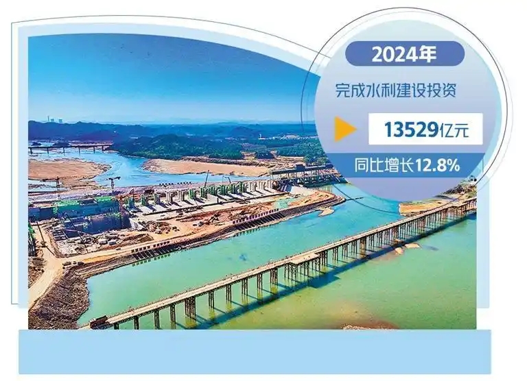 位于江西省抚州市金溪县浒湾镇的抚州疏山水利枢纽工程施工现场。朱海鹏摄(中经视觉) 水利部最新数据显示,2024年水利建设投资创历史新高,新开工国家水网重大工程41项,实施水利工程项目46967个,完成水利建设投资13529亿元,同比增长12.8%;大规模水利建设吸纳就业314.7万人,同比增长14.9%,有效发挥水利工程稳增长、促...