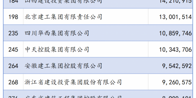 中华建设网讯 9月11日,在2024中国500强企业高峰论坛上,中国企业联合会、中国企业家协会发布了2024中国企业500强名单,其中,建设领域共40家建筑业企业上榜。 图片来源:建筑时报 今年榜单入围门槛为473.81亿元,较上年提高3.83亿元;“500强”营收规模迈上新台阶,共实现营业收入110.07万亿元,较上年增长1.5...