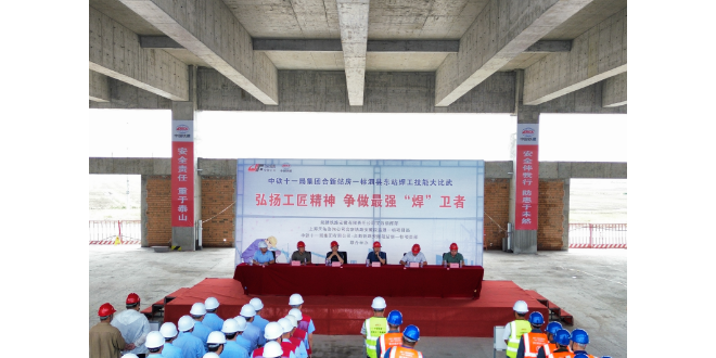 中华建设网讯(通讯员 李佳淼 何铭超) 为深入践行精细化管理理念,确保钢结构施工质量,中铁十一局建安公司合新铁路站房一标项目6月23日在泗县东站举行焊工技能大比武,相关单位单位领导及公司专家莅临指导。 参赛选手头戴安全帽、身着帆布工装,一手拿面罩、一手握焊枪,现场焊花飞舞,弧光闪烁,来自两个班...