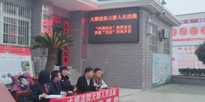 中华建设网讯(通讯员 朱梦雷)在“三八”妇女节即将来临之际,湖北孝感市大悟县住建局驻大新镇八口塘村工作队及八口塘村两委,以“共调共治、共建‘无讼’和美乡村”为主题,邀请大新镇人民法庭、司法所、派出所、综治办参与“共同缔造”活动。 人民法庭是基层社会治理的重要力量,是法院服务美好环境与幸福生活共同...
