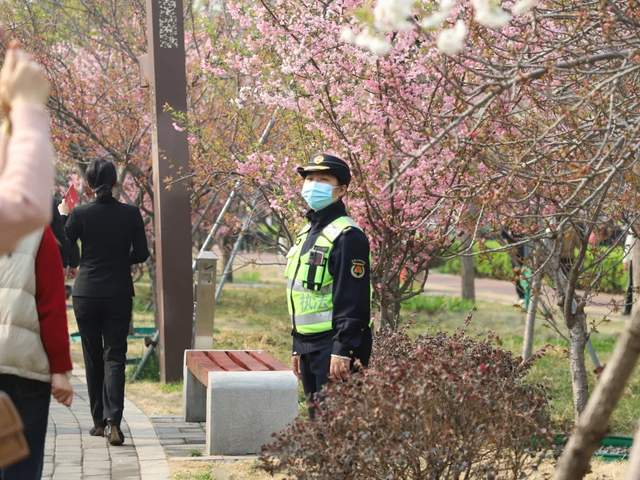 执法人员通过重点部位值守、全路段徒步巡查、机动巡查管控等措施,对赏樱群众进行疏导分流、宣传引导,对启动仪式现场及华夏南路、二支渠等地非机动车和共享单车进行规范,对不规范经营、触碰攀爬折枝等不文明行为及时劝导整治,积极营造干净文明、安全有序的赏樱氛围。