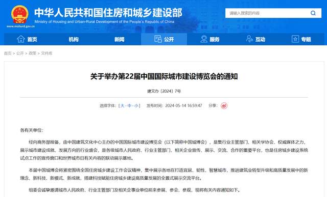 核心摘要:近日,住房和城乡建设部发布《关于举办第22届中国国际城市建设博览会的通知》。