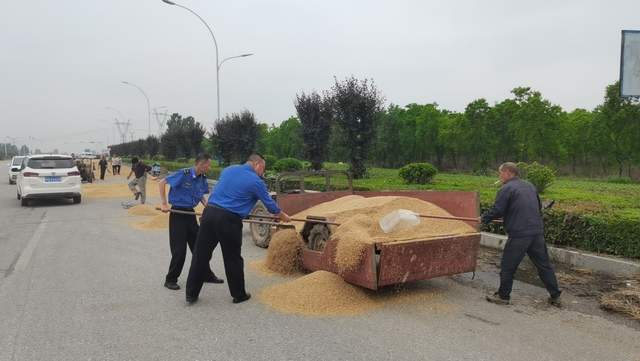 对于行动不便的晒粮群众,执法队员都会伸出援助之手,帮助他们收粮、晒粮,将粮食装袋清理出公路路面,同时讲解有关禁止打场晒粮的条款及在公路打场晒粮对交通安全造成的危害。