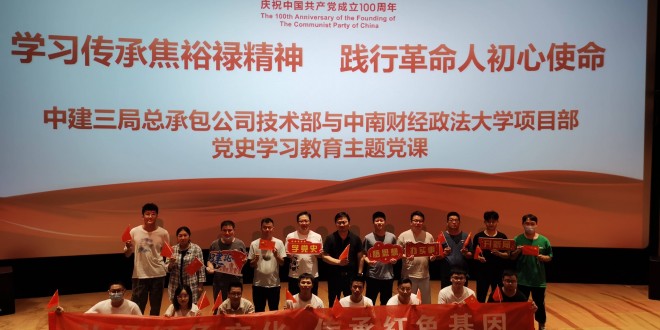 弘扬红色文化 传承红色基因 中华建设网讯(通讯员 夏芳菲)为庆祝建党100周年,深入开展党史学习教育,学习贯彻十九届六中全会精神,中建三局中南财经政法大学项目于近期组织全体人员观看《我的父亲焦裕禄》,学习传承焦裕禄精神,践行革命人初心使命。 影片讲述了焦裕禄在洛阳矿山机械厂就职于第一金工车间主...