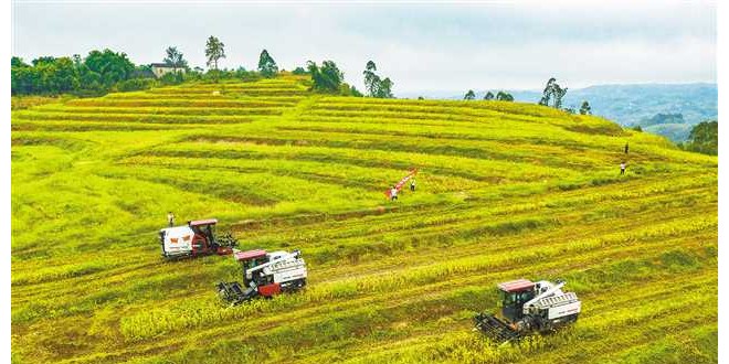 永川区仙龙镇粉店村岩口上山头,收割机正在宜机化整治后的地块收割大豆。(本报资料图片)郑宇 摄 食为政首,谷为民命。 近日,在中央经济工作会议上,习近平总书记说:“过去是南粮北调,现在是北粮南调。一些地方大把的良田不种粮食,要么建养殖场,要么是种花卉果木,那么粮食怎么办?” 今年以来,重...