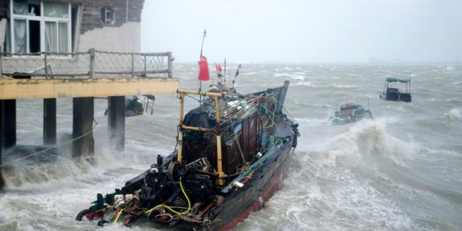 10月13日,受台风“圆规”的影响,广西沿海掀起了狂风巨浪,一些渔船在风浪中"摇摇欲坠"。鉴于“圆规”将对广西部分地区造成较大风雨影响,广西当天启动了防御台风 IV级应急响应,广西沿海地区相继发布了台风黄色预警,预计北部湾海面将出现11-12及阵风。图为渔船在风浪中摇晃。(翟李强 摄 如有侵权请联系027-6887338...