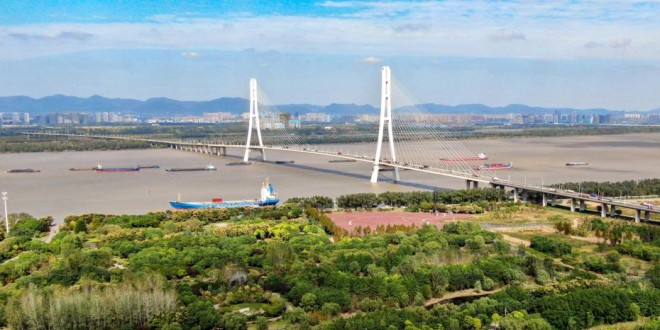 10月12日,江苏省南京市,航拍秋意浓浓的三桥湿地公园景致。江苏南京雨花台区辖区内的三桥湿地公园毗邻南京长江第三大桥,这里的生态林将江滩坡地与水体有机融合,成为一处集植物观赏、生态科普、步道游览于一体的休闲好去处。(泱波 摄 如有侵权请联系027-68873382) 来源:中新网