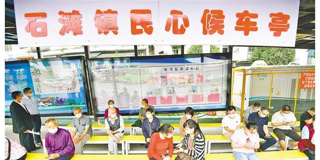 9月9日,巴南区石滩镇公交车站民心候车亭,居民坐在长条凳上等候班车。谢智强 摄 九月五日,江津区龙华镇龙门社区,工作人员将灭火器材配备到老街居民区。齐岚森 摄 九月九日,渝中区两路口街道桂花园新村,城管队员正在划摩托车停车位。崔力 摄 党史学习教育开展以来,重庆各地各部门在“我为群众办实事”实践活...