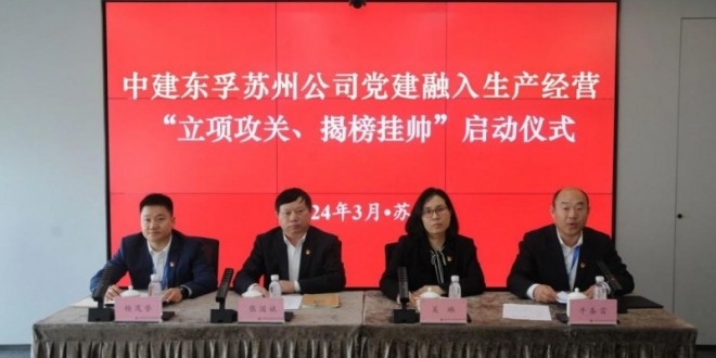 中华建设网讯(通讯员 徐悦洋)3月12日,苏州公司举行党建融入生产经营“立项攻关、揭榜挂帅”启动仪式。会上,公司党总支副书记汇报了苏州公司党建与生产经营融合方案,对下一步工作计划进行了安排部署。针对公司投资拓展、项目履约、人才房建设等重难点任务,苏州公司确定攻坚榜单,五位揭榜挂帅人在仪式上宣读攻坚目标...