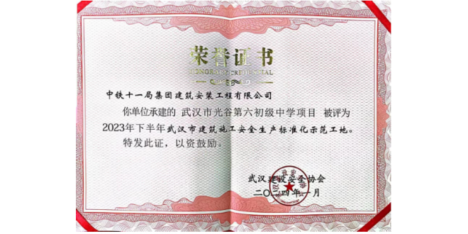 中华建设网讯(通讯员 贾昊 何铭超)近日,中铁十一局建安公司光谷第六初级中学项目获评2023年下半年“武汉市建筑施工安全生产标准化示范工地”。项目自开建以来,坚持做好安全生产和文明施工工作,不断查找不足、对标先进项目,树立安全文明施工标准化全员意识,充分营造项目“人人讲安全、安全工作放在首位”的作业氛围...