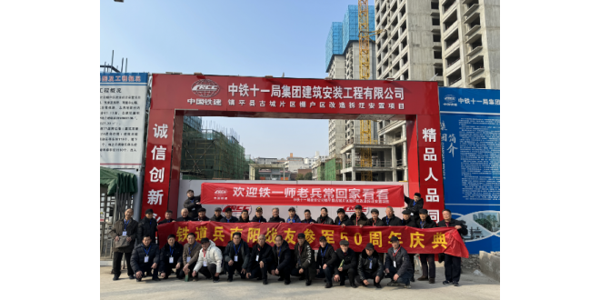 中华建设网讯(通讯员 蓝山证 何铭超)12月26日,在激昂的《铁道兵志在四方》歌声中,铁道兵第一师40余位南阳战友参军50周年庆典在镇平县拉开帷幕。 镇平县安置房项目受邀参加庆典,项目经理兼书记张根旺代表项目对老兵前辈们表示慰问。在庆典中,张根旺向老兵前辈们介绍了集团公司近年来良好的发展状况以及取...