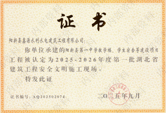 中华建设网讯 近日,从湖北省建筑工程管理部门传来喜讯,由城发鑫源公司承建的阳新县第一中学教学楼、学生宿舍等建设项目,经过严格的资料审核、现场核查与综合评审,成功斩获2025-2026年度第一批湖北省建筑工程安全文明施工现场称号,该公司在工程安全文明管理领域再添一项省级荣誉。 作为阳新县教育基础设施建设的重点...