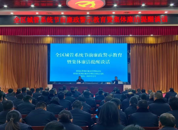 中华建设网讯 元旦、春节双节将至,为深入推进巡察整改工作,切实筑牢全区城管系统党员干部廉洁自律思想防线,营造风清气正的节日氛围,12月29日晚,黄冈市黄州区城管系统节前廉政警示教育暨集体提醒谈话会议在建新社区党群活动中心召开。区城管执法局全体在职人员参加。 会议由区城管执法局党组书记、局长汪振东主持。会...