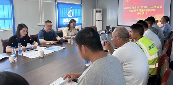 中华建设网讯 (通讯员 易容羽) 6月9日下午,湖北先创市政纪委书记姚亮深入高铁项目一线,组织开展了2023上年度廉政教育进项目暨2季度项目廉政谈话,参加此次廉政谈话的有高铁片区4个在建项目的现场管理人员。 会议首先学习了省纪委监委通报6起违反中央八项规定精神问题典型案例,通过反面案例学习,进一步...