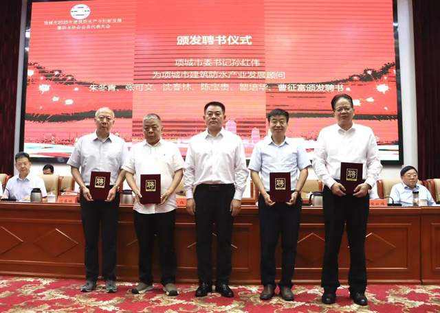 项城市委领导为项城市建筑防水产业发展顾问朱冬青、张可文、陈宝贵、瞿培华、曹征富颁发聘书。
