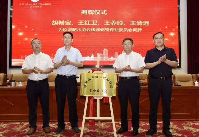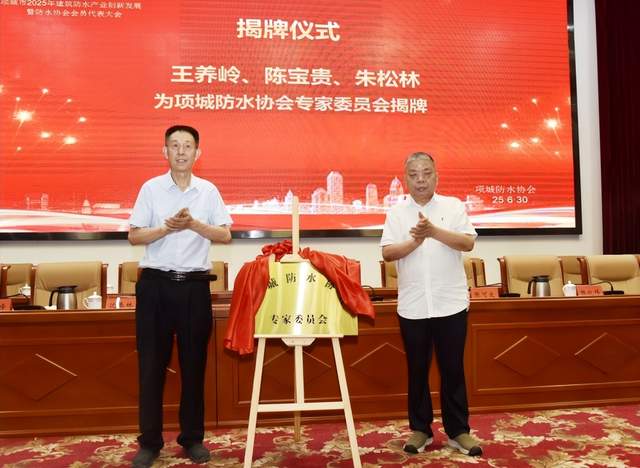 王养岭、陈宝贵为项城防水协会专家委员会揭牌。