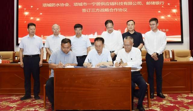 项城防水协会、项城市一宁居供应链科技有限公司、邮储银行签订三方战略合作协议。