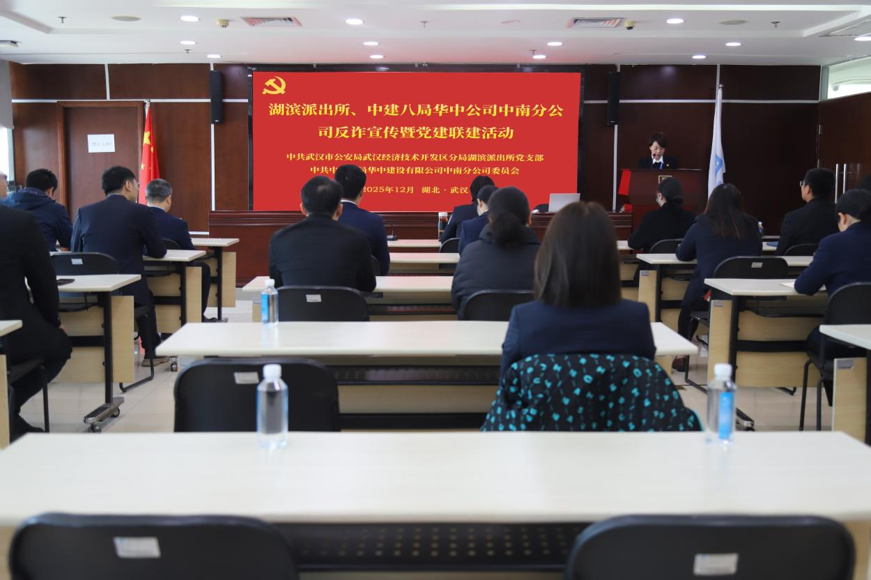 中华建设网讯(通讯员 李秋影)为提升公众防骗意识,筑牢企业安全防线。近日,武汉经注技术开发区分局湖滨派出所与中建八局华中公司中南分公司联合开展反诈宣传进企业主题活动。此次活动将党建联建与反诈教育相结合,推动警企协作走深走实,共同营造全民反诈、企业联防的良好氛围。 活动中,湖滨派出所罗丹副所长进行了精...