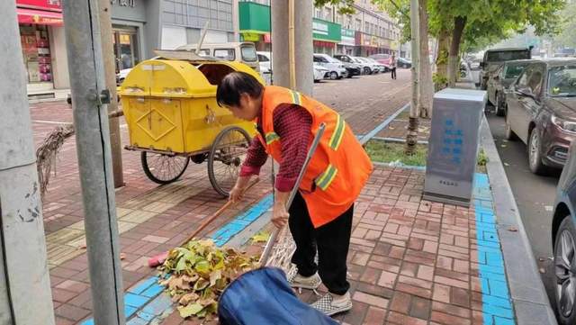 环卫人员对落叶及时清理
