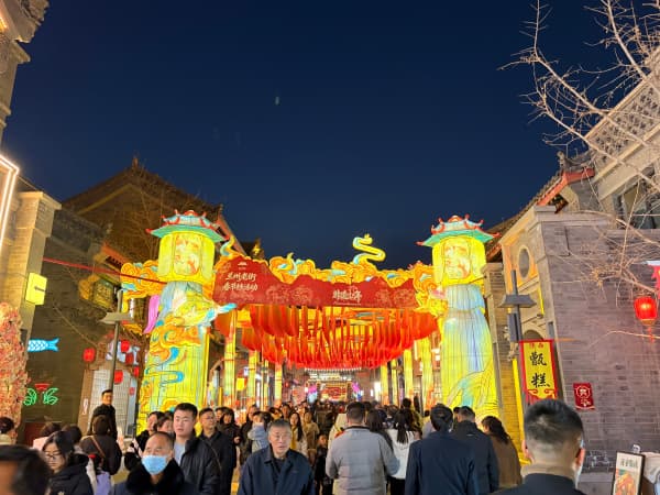 中华建设网讯 (记者 马金言)甘肃兰州的年黄河边的烟火与岁月的回响。 华灯初上时,兰州老街便成了丝路光影的盛宴。 一盏盏彩灯沿着青砖巷陌次第铺开,游人穿梭其间,赏灯、拍照,耳畔是欢声笑语,眼前是流光溢彩。 游客驻足观看时尚音乐演出。 锣开新运, 游客排队体验打卡。 游客争相上前与财神爷合影, 沉...
