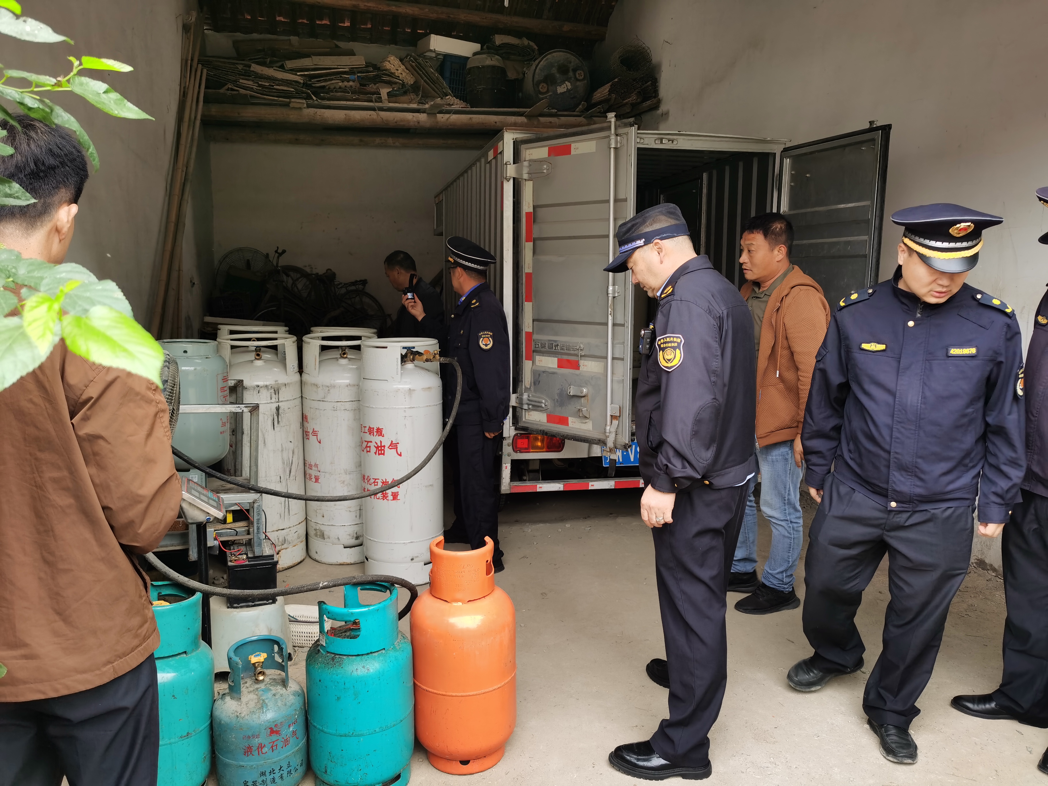 中华建设网讯(通讯员 梅学文 蒋昕怡 余美琪)10月13日,接市民电话举报,武汉市新洲区城管执法局联合凤凰镇、公安、市场监管等部门对凤凰镇三叉路村杨家岗155号一处黑气点进行查处,现场查获42个钢瓶和充装设备、电子秤、厢式货车等涉案工具。 当日上午,执法人员抵达现场发现,该黑气点位于杨家岗155号院内一侧厢房,...